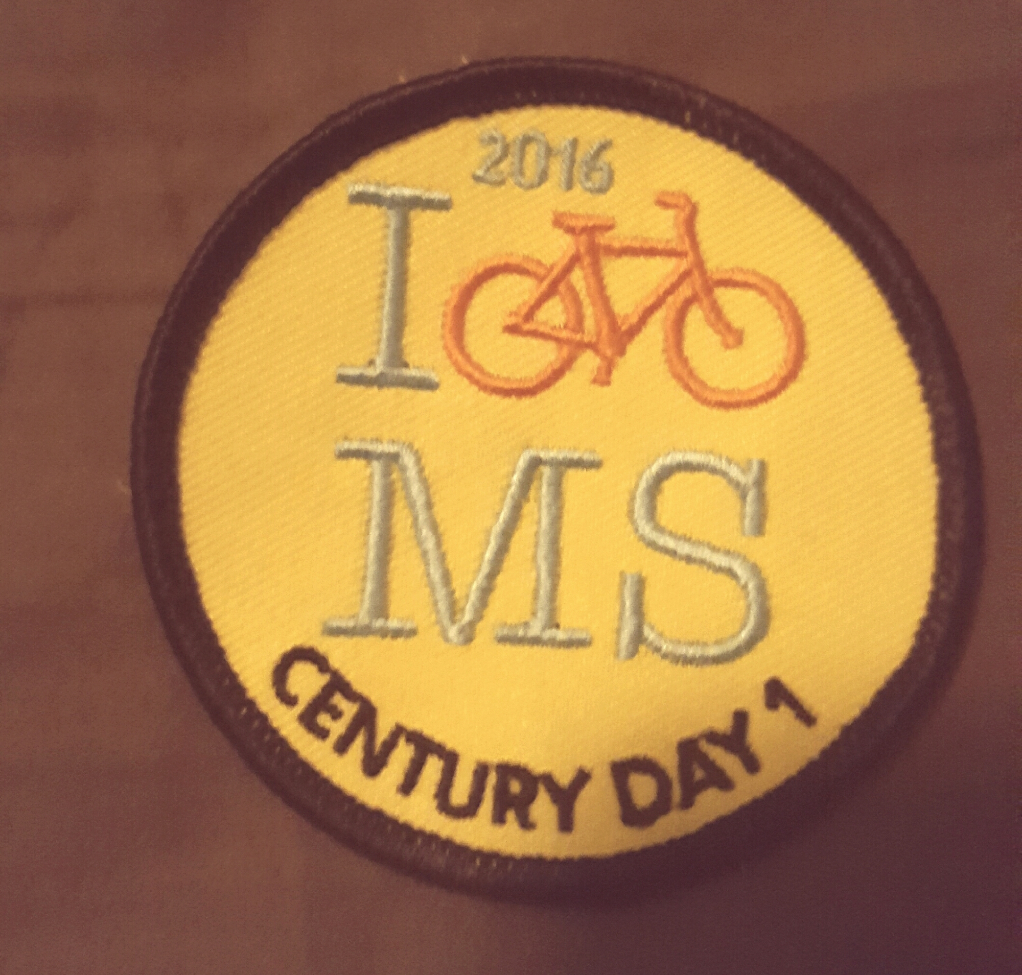 Mile 80, when I unclipped, stopped, somehow reclipped and fell so gracefully onto my left knee. And like an Olympic gymnast who didn’t quite stick the landing, I was back up, bike in hand as if nothing happened. I received my Century patch. It was encouraging. Now I just had to earn it.